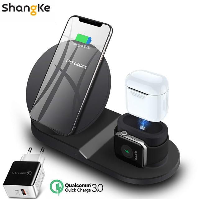 3 In 1 Wireless Charging Station! Keep your devices clean and organised without the hassle of multiple cords. This charging stations will charge your devices together all at the same time. Free up that much needed space on your bedside table or work desk.