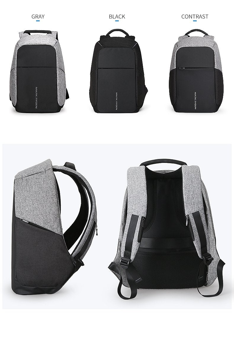 Mark Ryder anti-theft backpack is a USB charging backpack that can hold just about anything with the enhanced safety features of a hidden zipper to keep your belongings safe and secure.